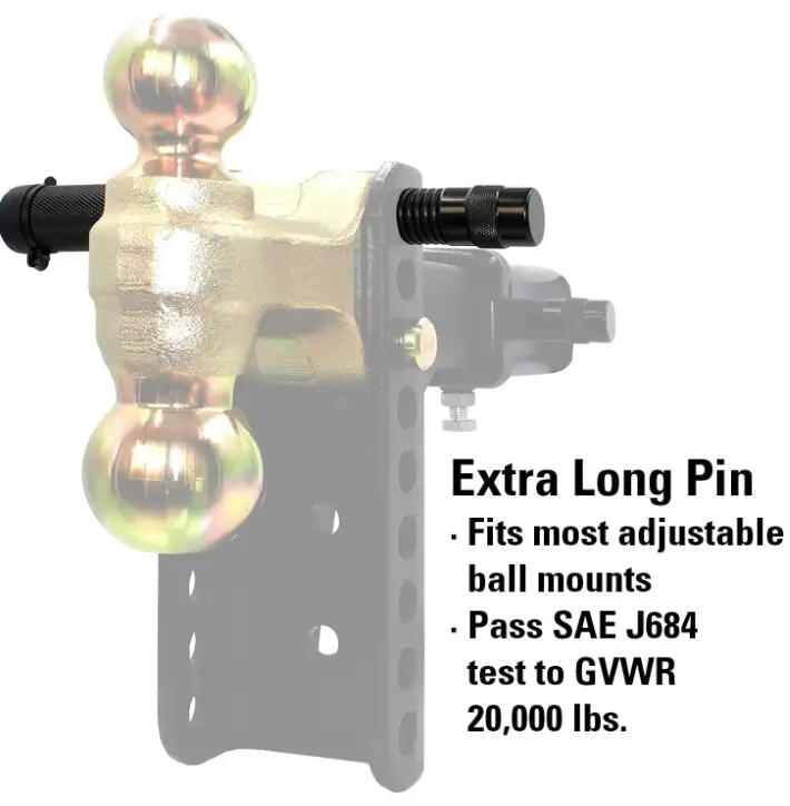 The TowWorks 79833 Keyed Alike 5/8″ Trailer Hitch Lock 3-pack provides three extra-long 4-1/2″ locking pins designed specifically for 3″ receivers and adjustable channel mounts that require extended reach. All pins operate with the same key, offering maximum convenience while ensuring strong, double-safety protection for multiple hitch points or multiple vehicles. Built for heavy-duty towing and long-lasting durability, this set gives buyers secure, reliable coverage for larger towing setups