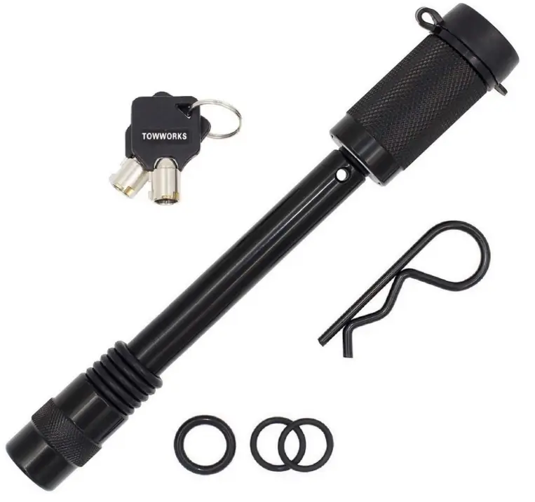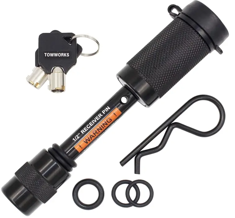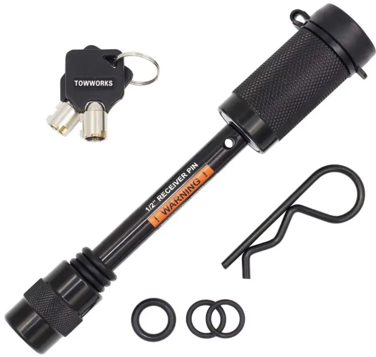 The TowWorks 79661 Keyed Unique 1/2″ Trailer Hitch Lock features a 3-1/4″ span that fits Class I and II hitches securely, making it perfect for smaller trailers and bike racks. Its double-safety locking mechanism provides strong protection against theft while keeping the pin firmly in place during travel. Built for smooth operation and long-lasting durability, this lock gives buyers a dependable and easy-to-use security solution for everyday towing